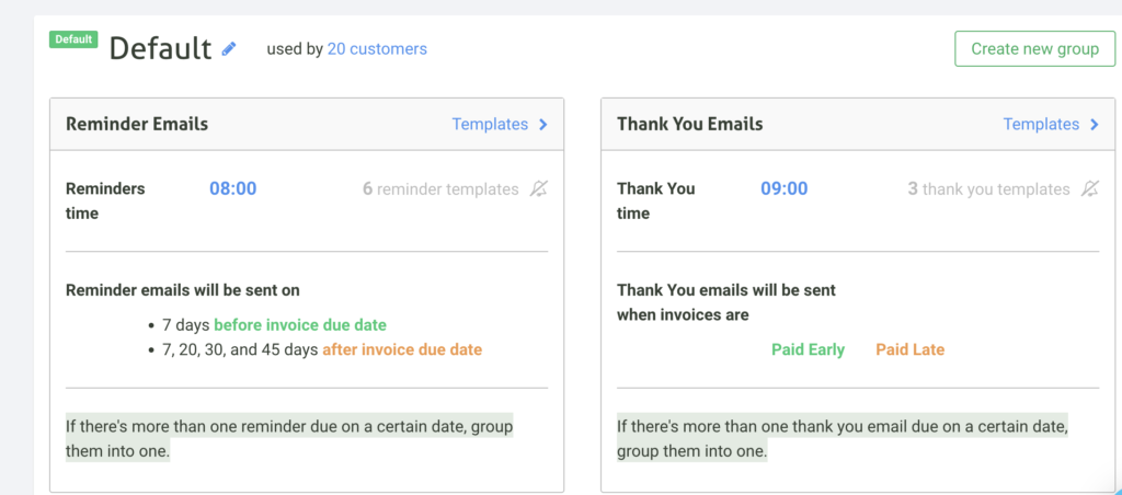 - Grouped invoice reminders (instead of sending separate email reminders).