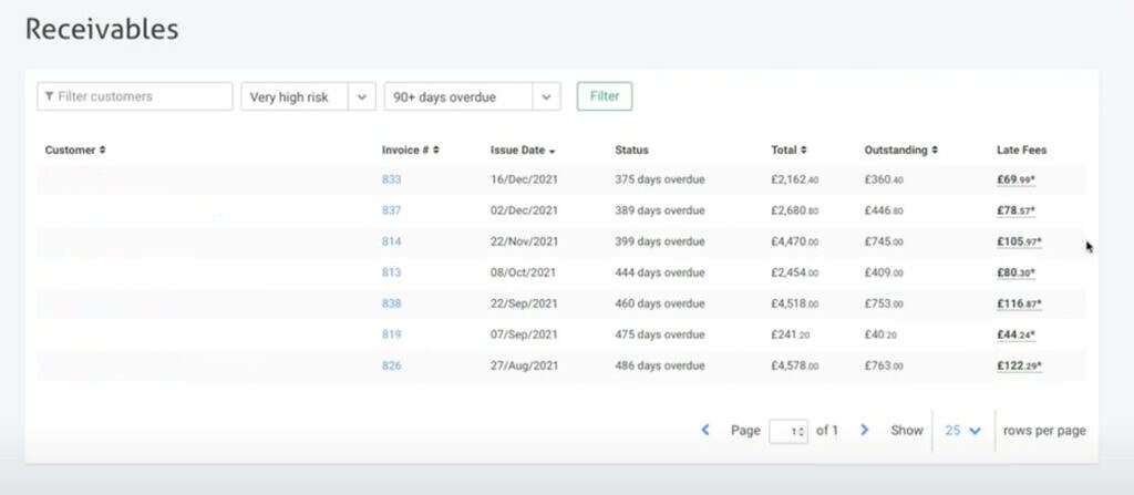 3. Once you’ve synced with your accounting package, head to “Account Receivables” and you’ll be able to see how much you can charge in late payment fees for each client.